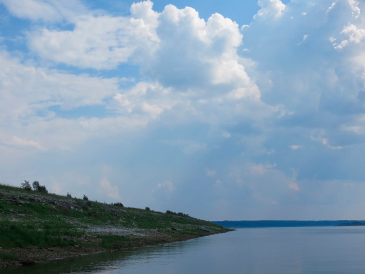 Плывем по новым местам. Никогда здесь не пробовали. С одной стороны интересно, берег крутой, как стена и дно каменистое. С другой стороны нет уверенности в наличии хищницы. Прошлую рыбалку исползали много мест, и лишь, хотя бы малыши в местах с малым течением показывали. Здесь наоборот напор чувствуется. Даже местами вода в водовороты уходит или вырывается вверх, бугрясь на поверхности.