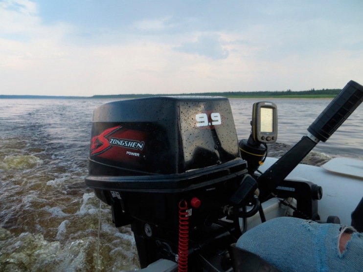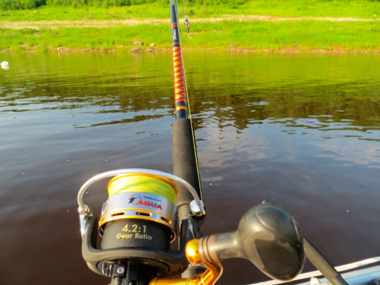 Едем подальше вверх по Двине. Хочется на быстринках попробовать, на каменистых перекатах. В прошлом году нормально отлавливались. Мотор спущен на воду, первые па. Затарахтел. Спины в воду. Прохожу для проверки глубину в два метра. Четыре тычка, из них два шнурка отправленные обратно в родную стихию.