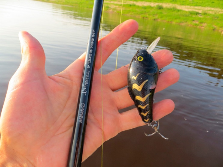 Меняем вобы на 4-х метровое заглубление. Иду вверх по течению. Мощная поклёвка у Михаила и через секунду у меня. Чертыхаемся. Зацеп крутой. Подтягиваемся на нитках. Вобы точно лежат на одной прямой от берега. Сеть или самолов. Радости мало. Спускаемся чуть ниже по течению. Резкий рывок.
