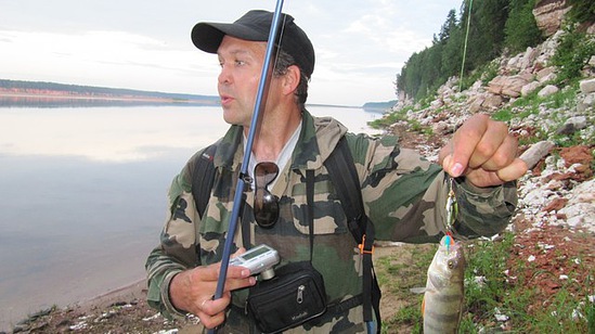 - Да, щучку небольшую поймал, - говорит мужчина, держа в руках собранную сумку с экипировкой. Не клюет. Домой поехал.