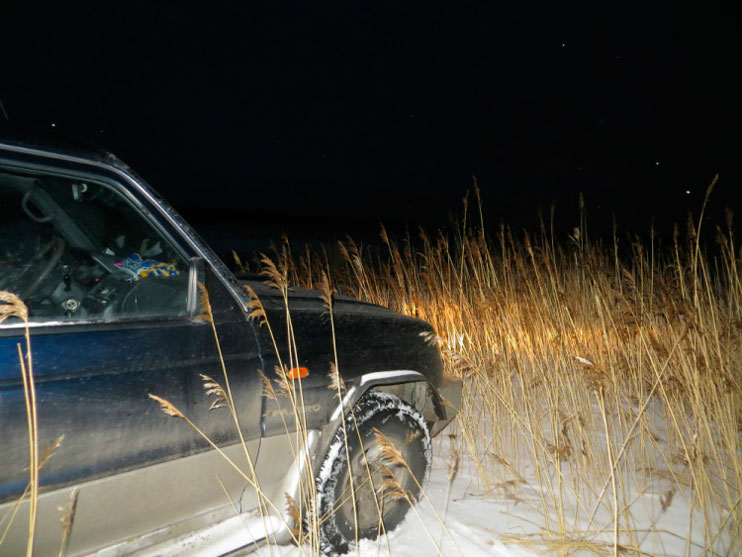 Нашли место для стоянки, да разгрузились уж затемно.