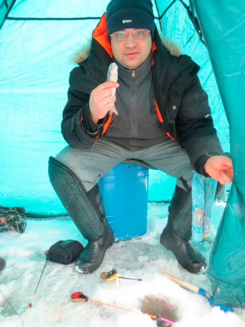 В кубе перерыв, зато тепло, и можно ловить без шапки и рукавиц.