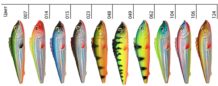 Девять различных расцветок позволят Вам выбрать приманку для любой погоды и времени суток.
