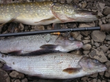 Все поймано на воблера аква М2, аквавский же шнур и карабины. С лодки на дорожку! |