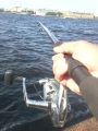пойман трофей в заливе р.Кама конец мая на спиннинг SILVER-STREAM 5-35g 2.70m,катушка TEXAS,леска X-Line Pike №1 0.30мм.,вертушка с красным лепестком чёрными точками 12гр., фрикцион отработал отменно и леска не ..... |