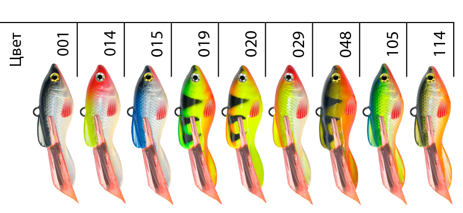Дополнительная окраска хвостового стабилизатора в рубиново-красный цвет, по результатам тестирования, стабильно увеличивает улов на 17-23%.