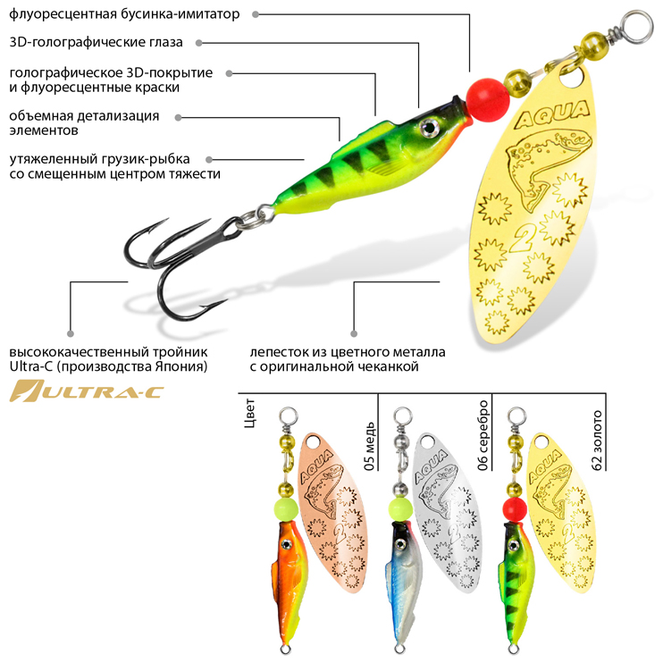 Особенности блесны-вертушки AQUA Fish Long Extra: