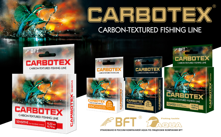 Вся леска под торговой маркой CARBOTEX® произведена компанией Balazs Filament Technologies (BFT) упакована в Санкт-Петербурге компанией AQUA.
