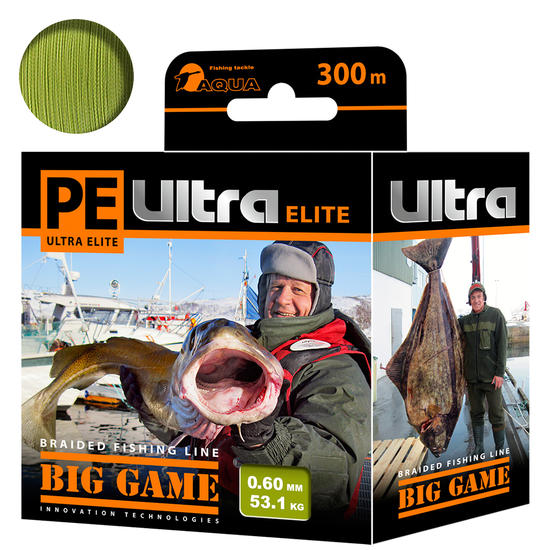 Плетеный шнур AQUA PE ULTRA ELITE BIG GAME Olive 0,60mm 300m, цвет - темно-зеленый, test - 53,10kg
