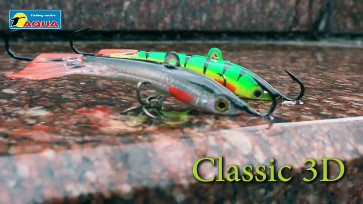 Это первый из увидевших свет балансиров фирмы AQUA, моделей получила название CLASSIC и за прошедшие уже не просто годы, а десятилетия заслужено оправдал свое название. Эта модель и по сей день остается самой востребованной универсальной приманкой для ловли хищника, в первую очередь окуня, на глубинах до 5 метров.