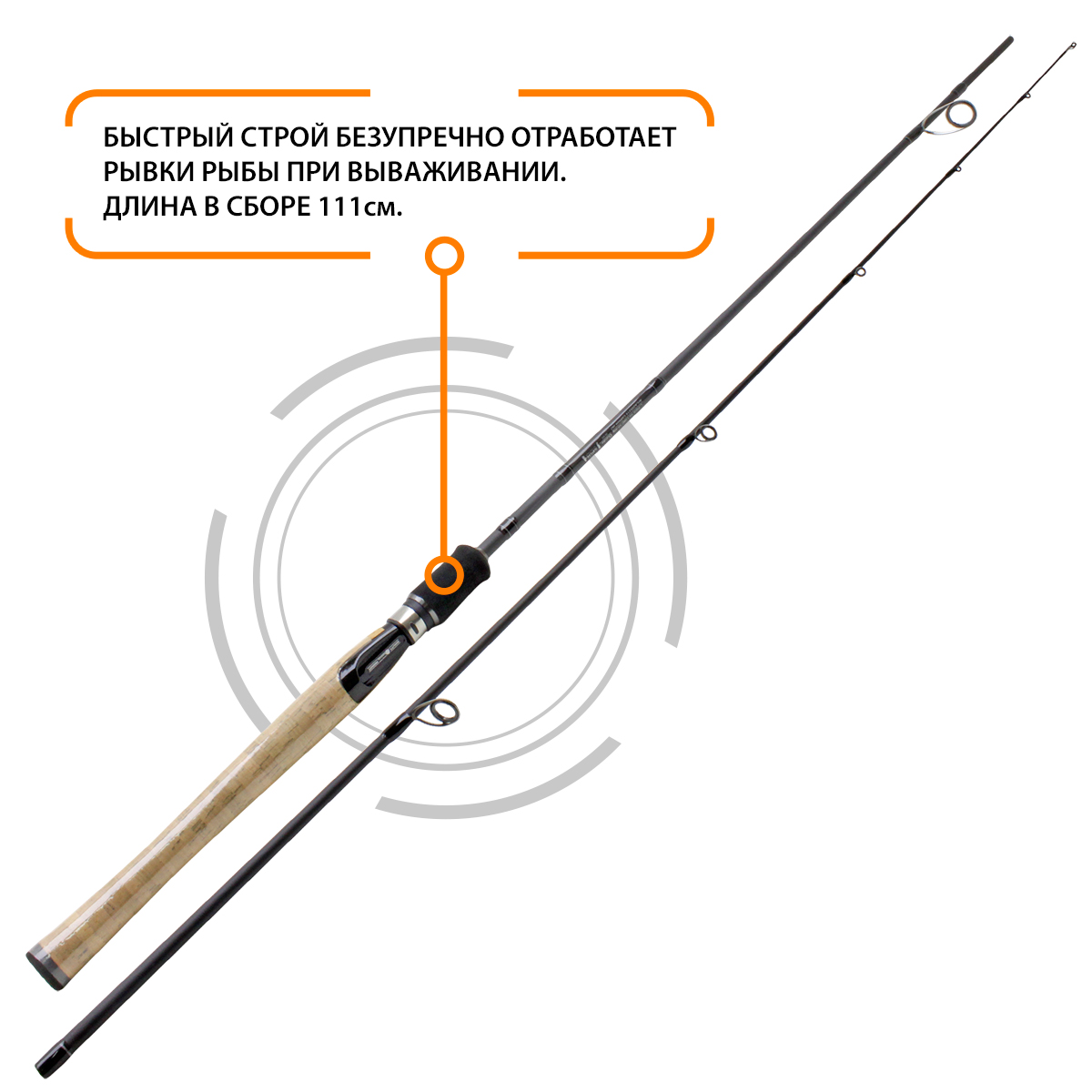 Строй удилища - быстрый. Отлично подходит для джиговой ловли с активными приманками (твистерами, рипперами и виброхвостами), для ловли на прерывистую проводку на воблеры или колеблющимися блеснами, а также для ловли с твитчинговыми воблерами или попперами.
