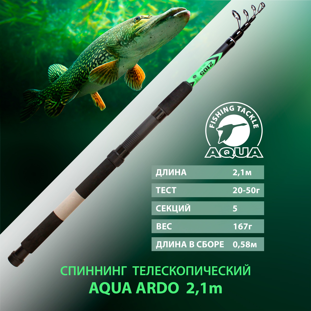 Спиннинг для рыбалки AQUA ARDO 2,10m 20-50g – универсальное телескопическое спиннинговое удилище, оснащенное качественными пропускными кольцами с керамической вставкой.