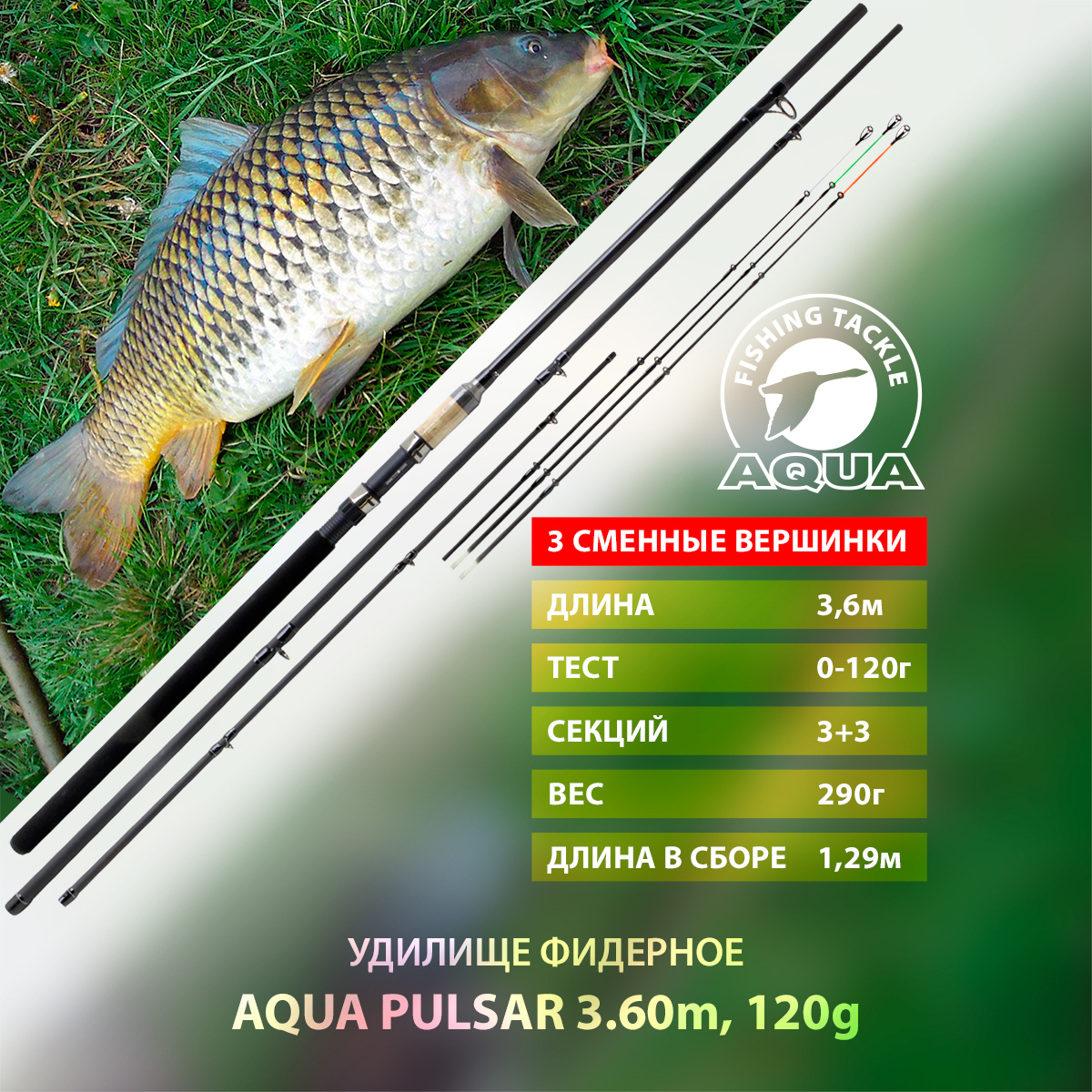 Удилище фидерное для рыбалки AQUA PULSAR 3,60m, тест до 120 грамм - отличный инструмент предназначенный для ловли крупной рыбы на дальних дистанциях. AQUA PULSAR - это серия классических трехсекционных фидерных удилищ класса Хэви фидер (Heavy фидер).