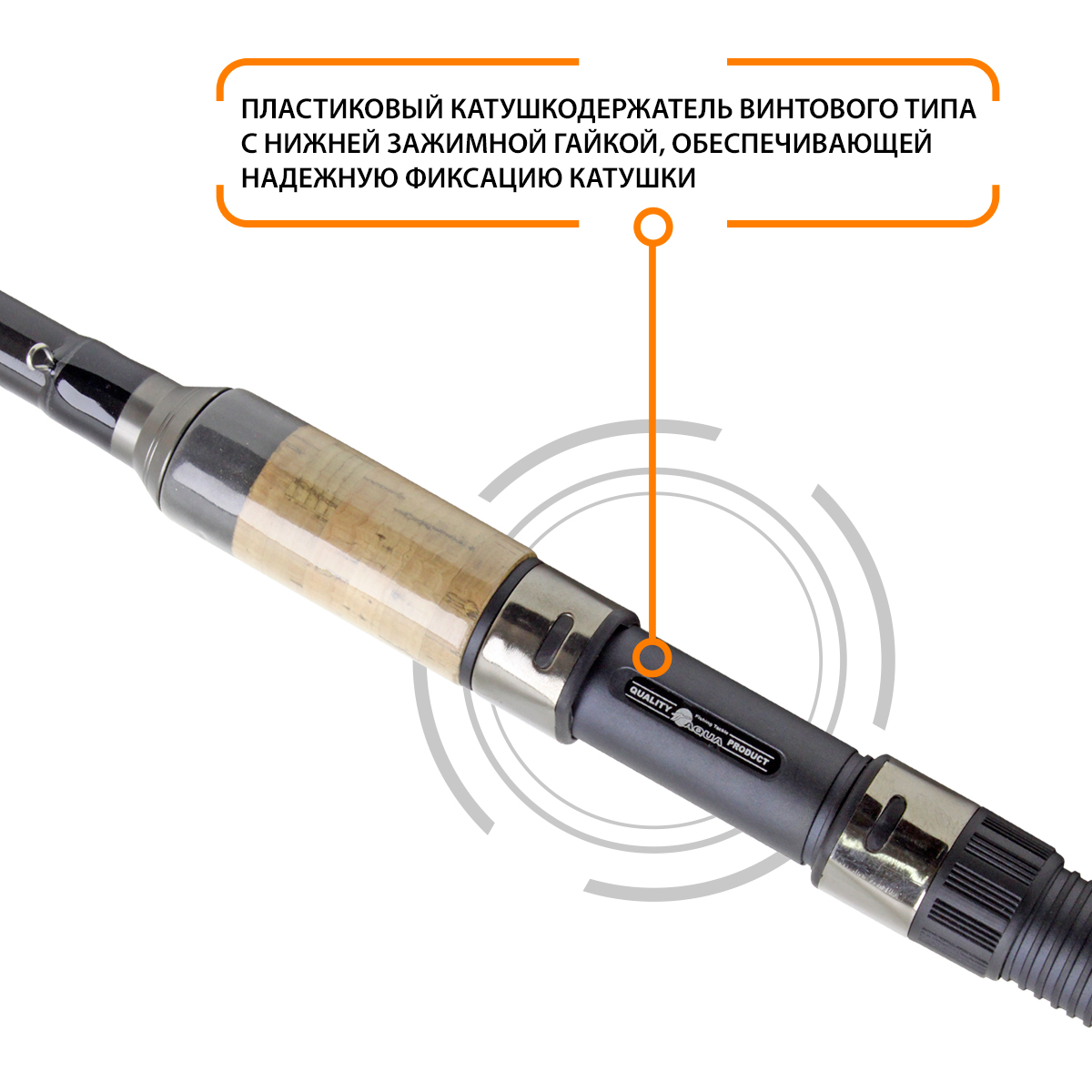 Пластиковый катушкодержатель с нескользящим покрытием винтового типа с нижней зажимной гайкой обеспечивает надежную фиксацию любой катушки и позволяет сменить её буквально за несколько секунд.