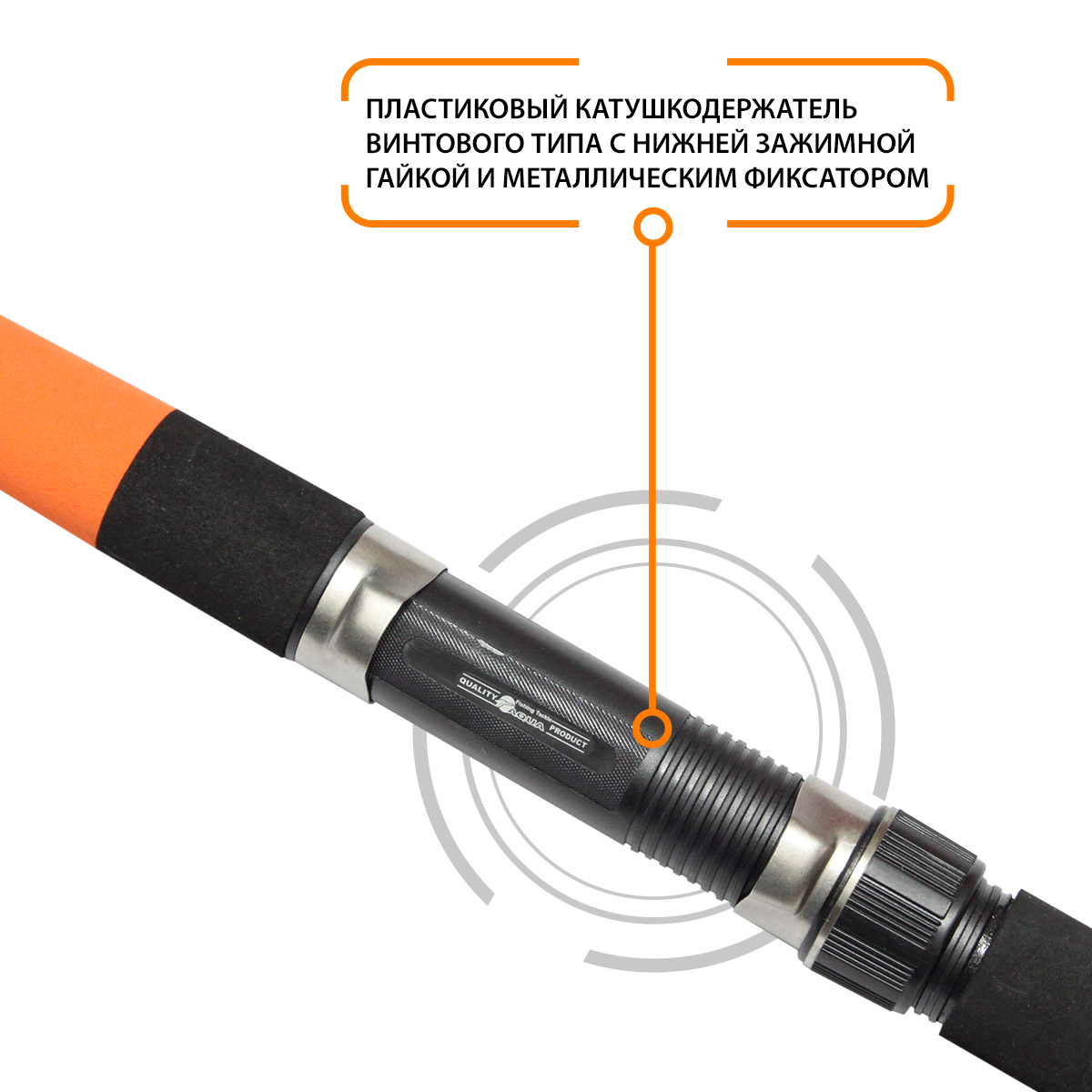 Пластиковый катушкодержатель с нескользящим покрытием винтового типа с нижней зажимной гайкой обеспечивает надежную фиксацию любой катушки и позволяет сменить её буквально за несколько секунд.