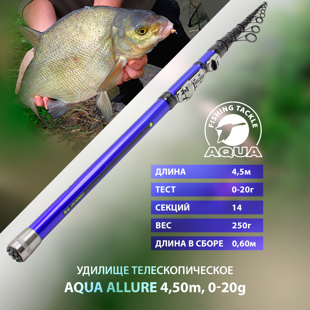 Болонское удилище телескопическое AQUA ALLURE 4,50m - это поплавочная удочка короткого сложения.