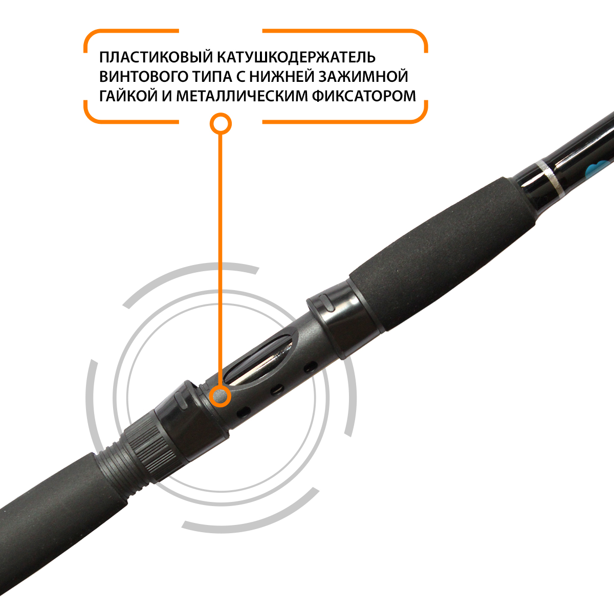 Пластиковый катушкодержатель винтового типа с нижней зажимной гайкой и металлическим фиксатором надежно удерживает любую катушку, а так же позволяет сменить её буквально за несколько секунд.