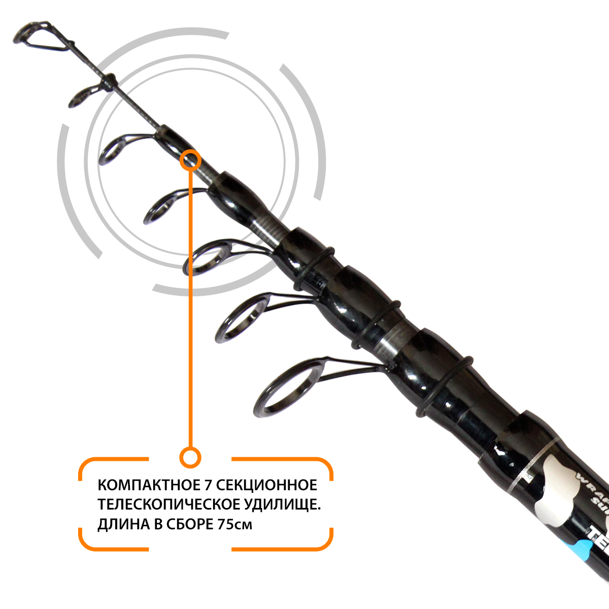 Минимальная длина в сложенном состоянии позволяет без проблем положить удилище в багажник машины или легко прикрепить к сумке или рюкзаку.