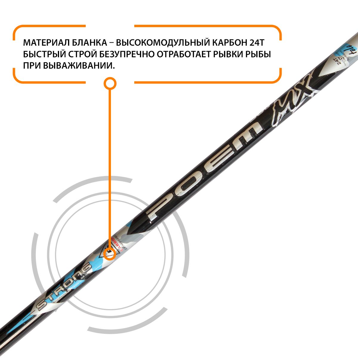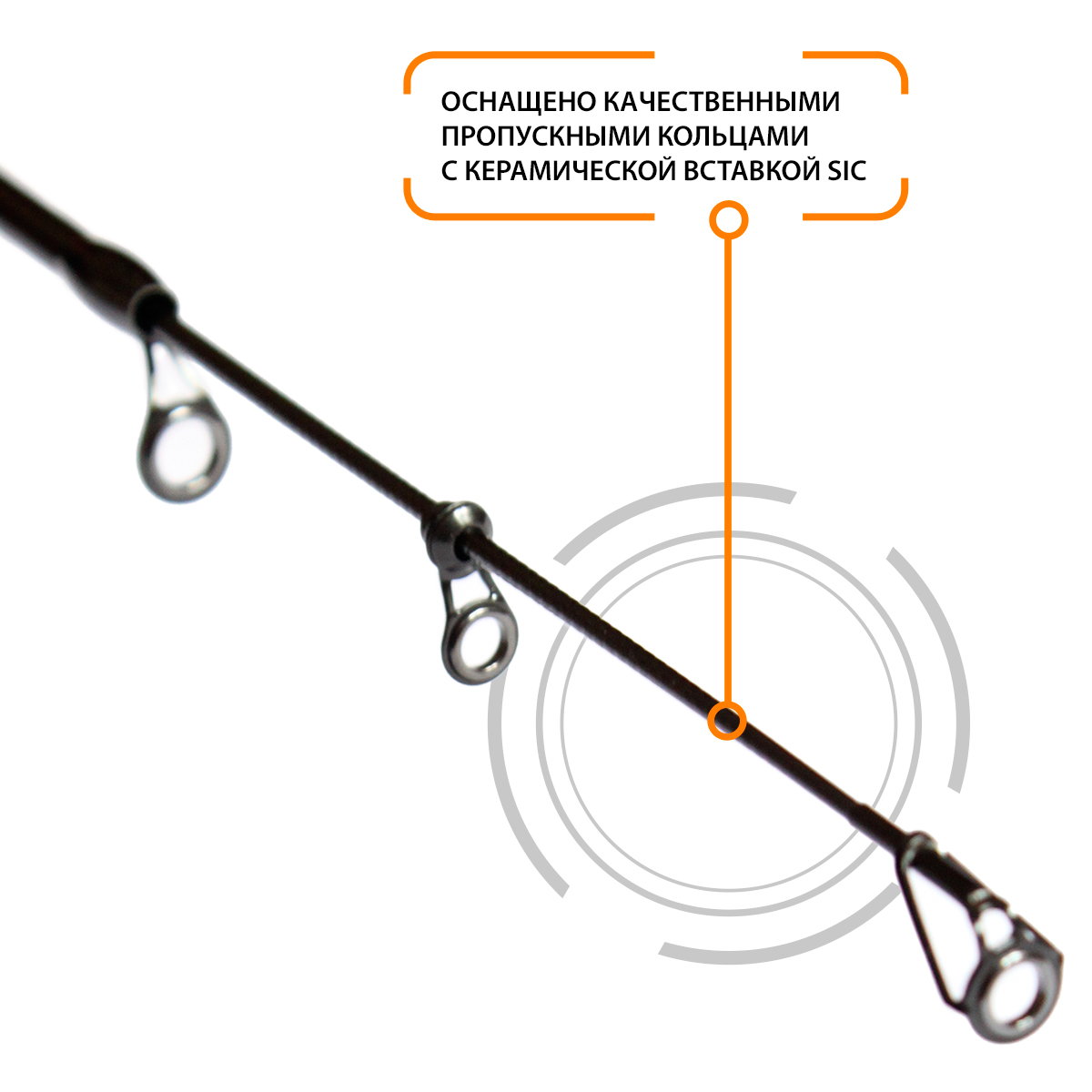 Бланк оснащен высококачественными кольцами с керамической вставкой SIC, что в значительной мере снижает трение лески при забросе приманки или вываживании рыбы.