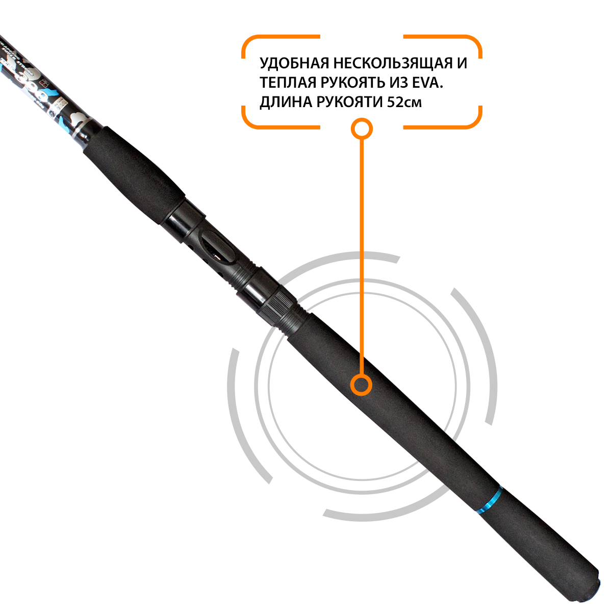 Рукоятка, изготовленная из теплого и устойчивого к абразивам материала EVA-BIO, позволяет с комфортом ловить при любой погоде и температуре окружающей среды.