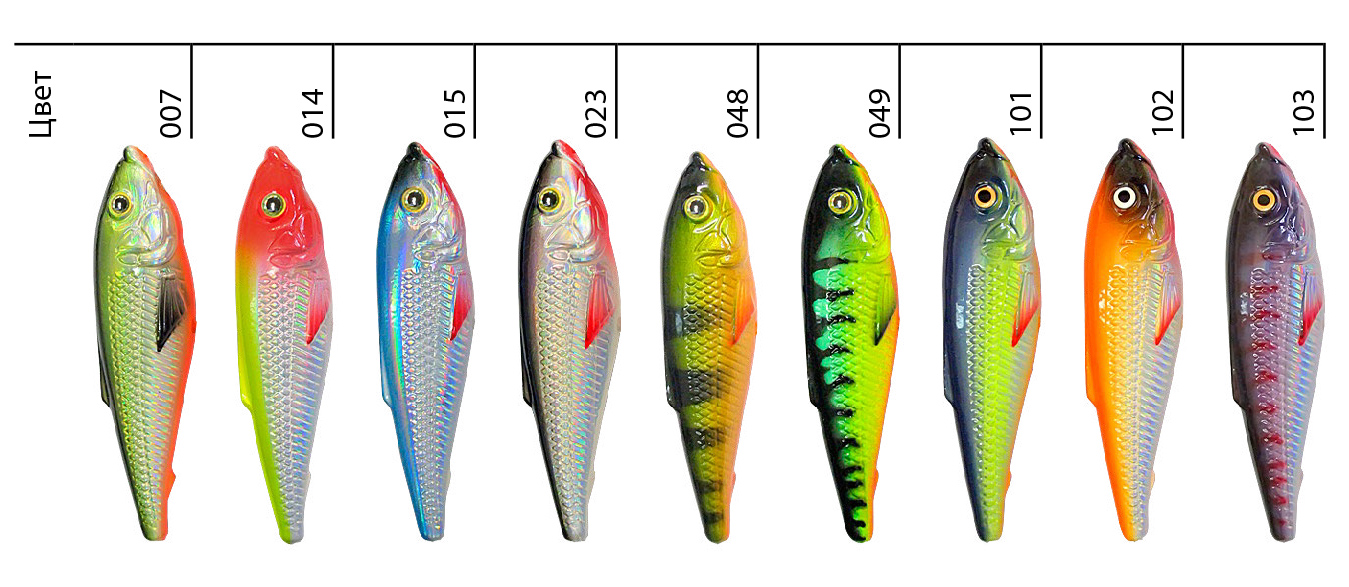 Цвет тройников, боковых плавников, заводных колец и 3D глаз может отличаться от представленных на фотографии.