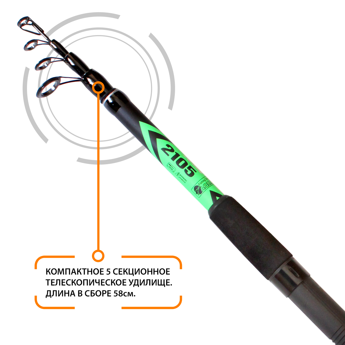 Минимальная длина в сложенном состаянии позволяет без проблем положить удилище в багажник машины или легко прикрепить к сумке или рюкзаку, то есть отлично подойдет для путешествий!