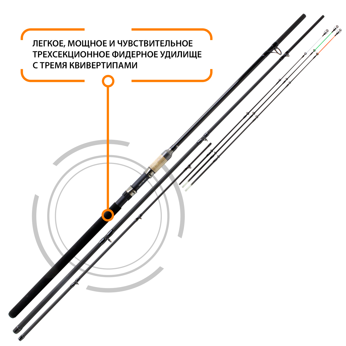Удилища фидерные для рыбалки AQUA PULSAR от 3,30 до 3,0m, с тестом от 120 до 180 грамм - отличный инструмент предназначенный для ловли крупной рыбы на дальних дистанциях. Ключевое преимущество этих удилищ — наличие 3-х сменных вершинок (квивертипов) различной жесткости в комплекте, позволяет использовать кормушки практически любого веса, что позволяет рыболову настроить удилище под разные условия ловли. Это самая чувствительная часть фидерного удилища - они сигнализирует о поклевке рыбы, изменяя свою форму или изгиб.