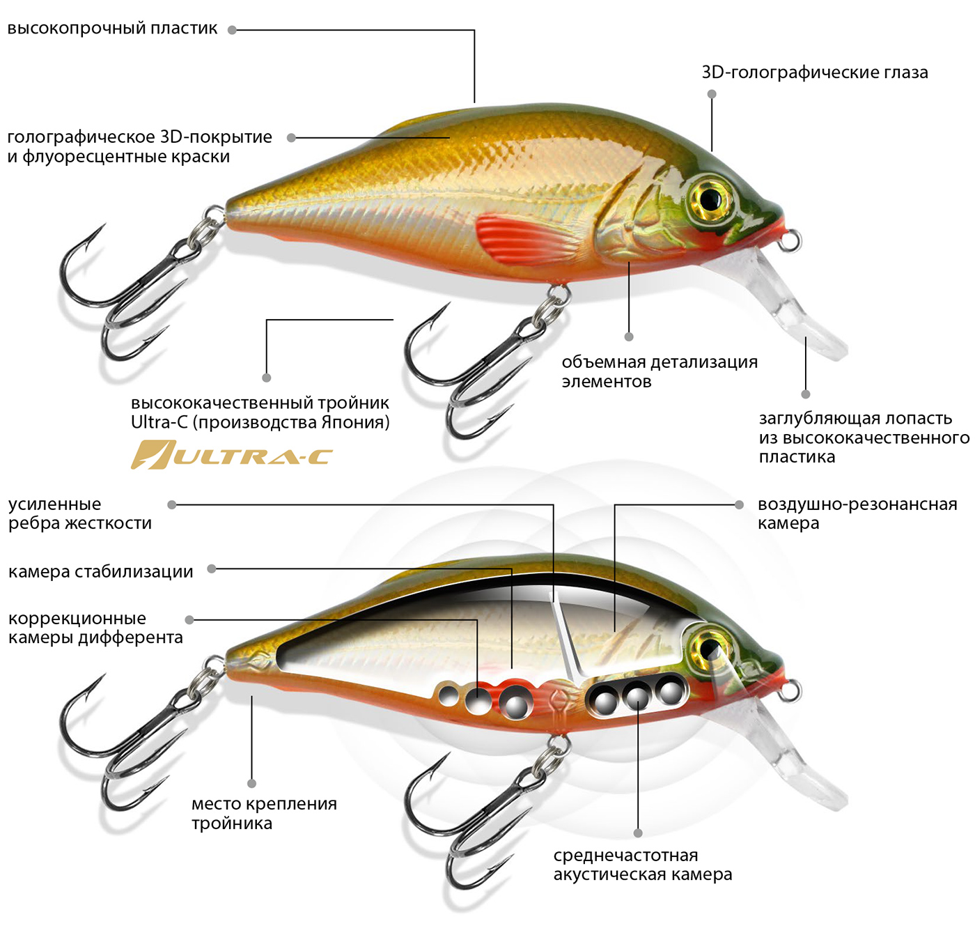 Высококачественные японские тройники Ultra-C оптимального размера, которыми оснащена приманка, рассчитаны на ловлю любой рыбы, а их безупречная заточка позволяют подсечь улов даже при вялой, неуверенной поклевке.