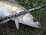 В прошлом году на этом пруду оборвал все снасти, брат сказал, что у меня леска плохая, китайский ширпотреб, посоветовал леску PE Ultra и пожалуйста, первый заброс и есть первый карп в этом году, ..... |