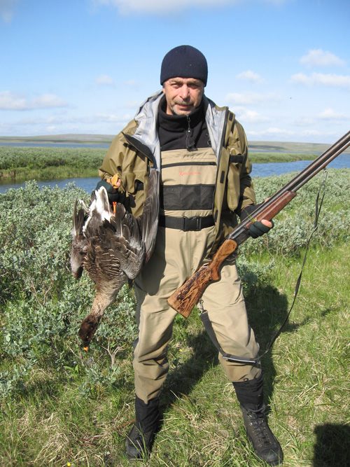 Утром, когда мы выходили на рыбалку, на одном из многочисленных озёр, я заметил стаю гусей. К концу августа гусь уже встал на крыло, так что добыть гуся было бы в самый раз. Балки, где мы жили были снабжены газовой плитой с большим запасом топлива. Да и ружьецо наш благодетель нам оставил. Вот у меня и зародилась идея приготовить на ужин гусика. Уж больно мы соскучились по свежему мясу. Сказано – сделано. Мне удалось добыть одного гуся.