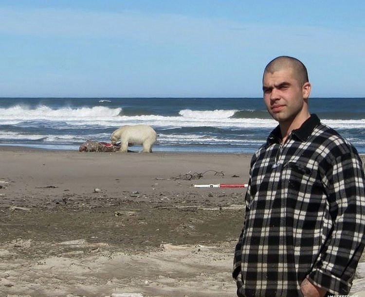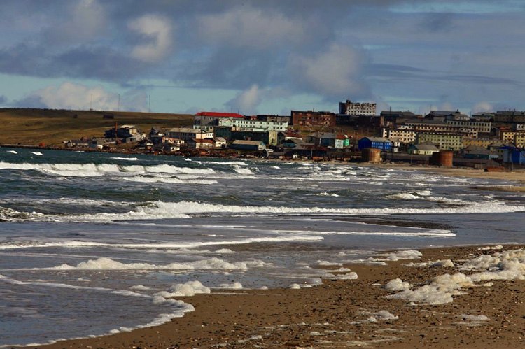 В прошлом году, когда я первый раз ступил на амдерминскую землю, выйдя из самолёта, я был поражён. Холодный, пронизывающий ветер, солнце и шум. Я сначала не понял, откуда такой накатный шум? Потом, увидев океан, всё стало на свои места. Амдерминский аэропорт находится на косе, у океана. С одной стороны океан, с другой лагуна. Мне ещё подумалось – как только не смывает штормом полосу??? Да ещё встречающий нас Ефимыч поведал о том, что буквально за час до нашего прилёта к взлётной полосе из океана вышел мидведь и притащил с собой добытого им толи тюленя, толи нерпу. Все попытки отогнать медведя ни к чему не приводили. Зверь спокойно трапезничал, не оброщая ни какого внимания на людей, пытающихся его отогнать.