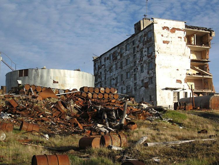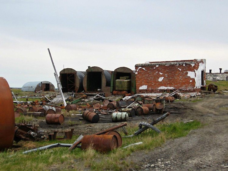 В общем было от чего впечатлиться в первые минуты после самолёта. Дальше – больше. Садимся на автобус и едем в посёлок. С первого взгляда удивляет количество металлолома вокруг. Старые ржавые бочки, какие то гнутые трубы, брошенная техника, полузатопленные корабли ……