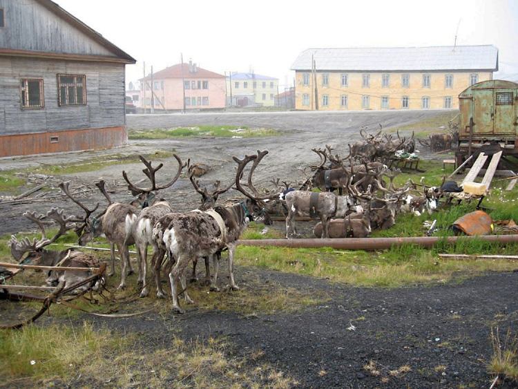 Амдерма в этот раз встретила нас весело, что ли. На улице во всю играли дети, у одного из домов звучала музыка, у магазина, куда мы тут же заехали, был прямо слёт оленеводов, вернее стояли упряжи, а людей около них не было. В здании магазина ещё располагался и бар. Вот там наверное и был «самоедский» слёт….