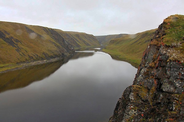 До Талатаяхи нам предстояло ехать порядка 70 километров. Три часа тряски в кунге вездехода удовольствием не назовёшь. Болтало и качало так, что казалось ещё чуть и голова от тела оторвётся. Но оно того стоило. Река, на которую мы приехали, была оченькрасивой. Грандиозные каньоны с отвесными высокими скалами, широкое русло с глубокими ямами, перекаты. Здесь было где разгуляться.