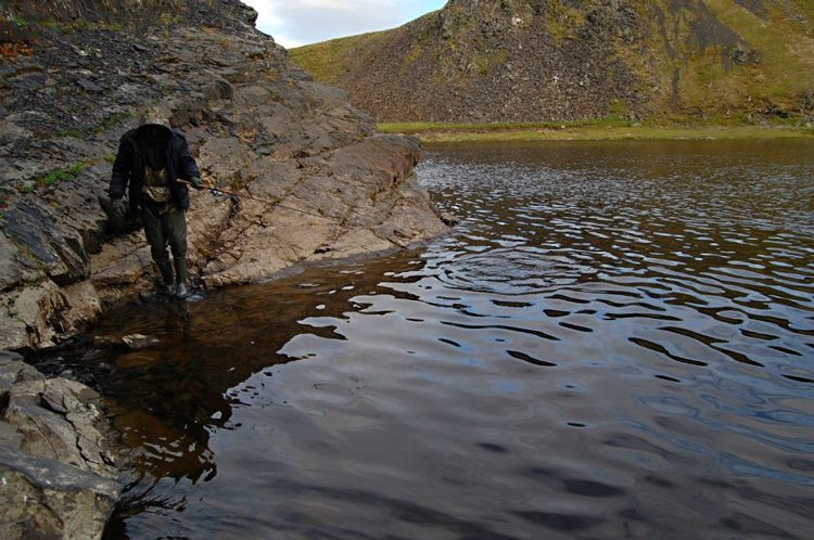 Вот по этому ручью с Карского моря когда то на нерест зашёл голец, да там и остался, образовав осёдлую форму. Вообще видов гольца существует очень много. Они могут различаться по нескольким признакам таким, как расцветка, форма тела, ширина пасти и ее «зубастость», окрас плавников, цвет мяса и размеры. Если «портреты» этих лососевых рыб могут разниться даже в одном и том же водоеме, то суждения об их видовом разнообразии ведутся до сих пор среди ихтиологов, не говоря уже о просто рыболовах, которые до хрипоты спорят о том, кто в улове голец, либо палия. Но оставим споры специалистам и продолжим. В тех озёрах, на которых нам предстояло рыбачить, мне в прошлом году попадался голец двух видов. Разнились они как по окрасу, так и по размеру. Первый вид – гольчики, небольшого размера и веса. Они достигали размеров сантиметров 30 роста и веса не больше 700 грамм. О половозрелости рыб этого вида говорит то, что нам попадались самки с икрой.