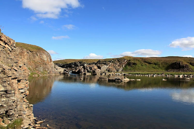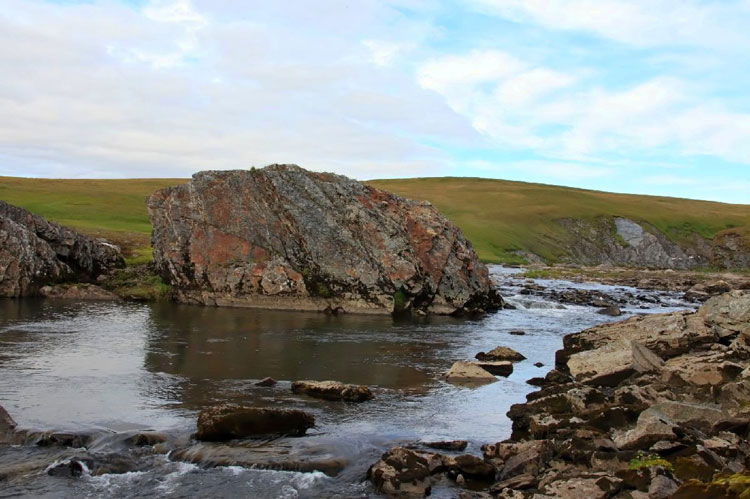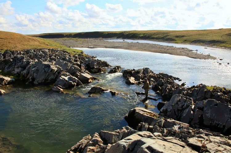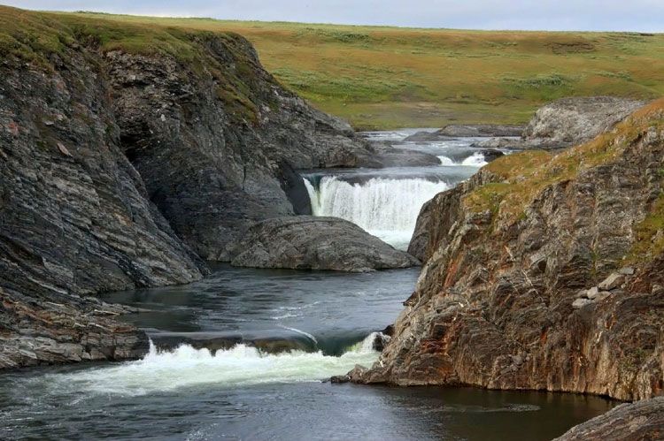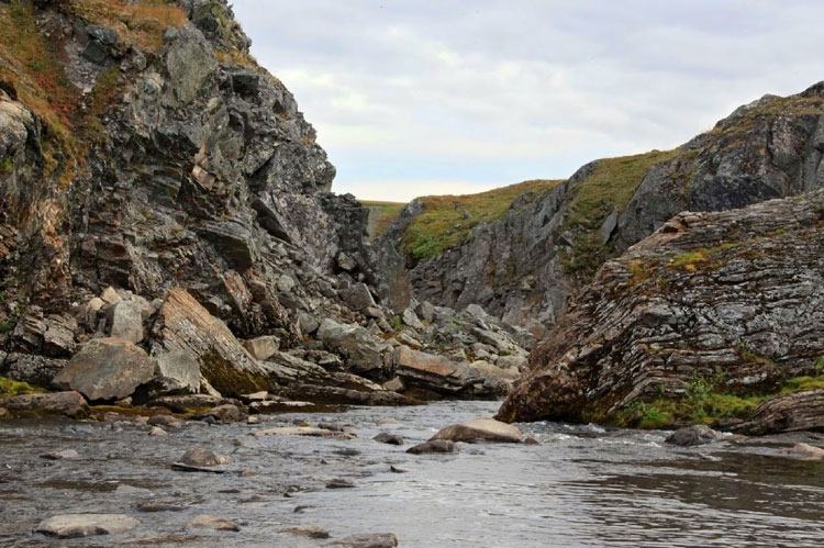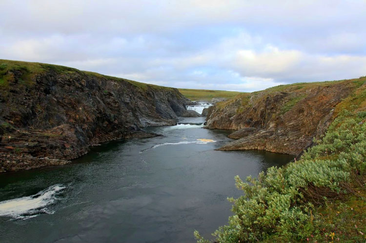 Изюминкой реки Болшая Нгою (Великая) считается каньон «Зоопарк» с грандиозным водопадом. Вот там, на ямах, ниже водопада, я и рассчитывал попытаться ловить гольца. Река впадает в Карское море и в Великой должен водиться голец. В прошлом году , мне до Великой добраться так и не удалось…помешал ураган.