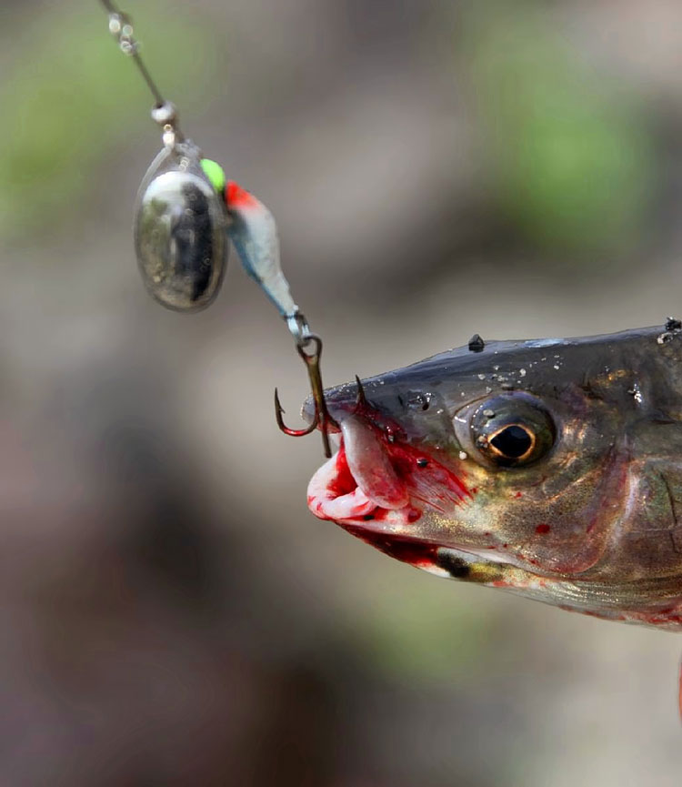Любое новое место я всегда начинаю облавливать проверенными , зарекомендовавшими себя приманками. Этот раз был так же не исключением. Я поставил блесну AQUA COMET+BELL второго номера. Эта приманка по хариусу мой фаворит. Ловит она хариуса в любом месте, при любых условиях, заводится с полуоборота благодаря широкому лепестку, даже при ловле апстрим.