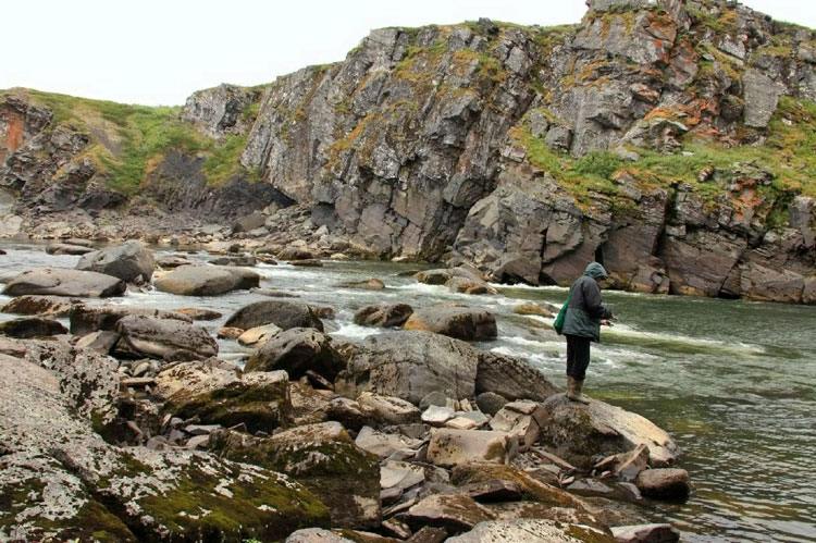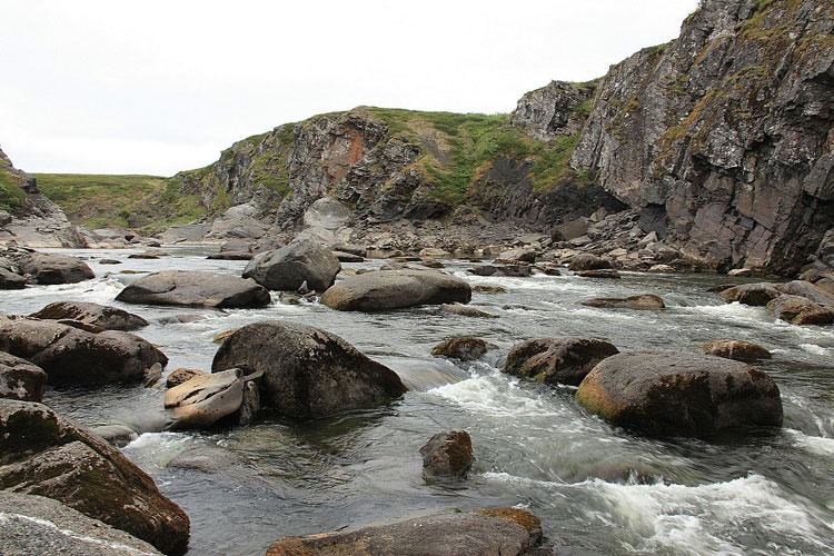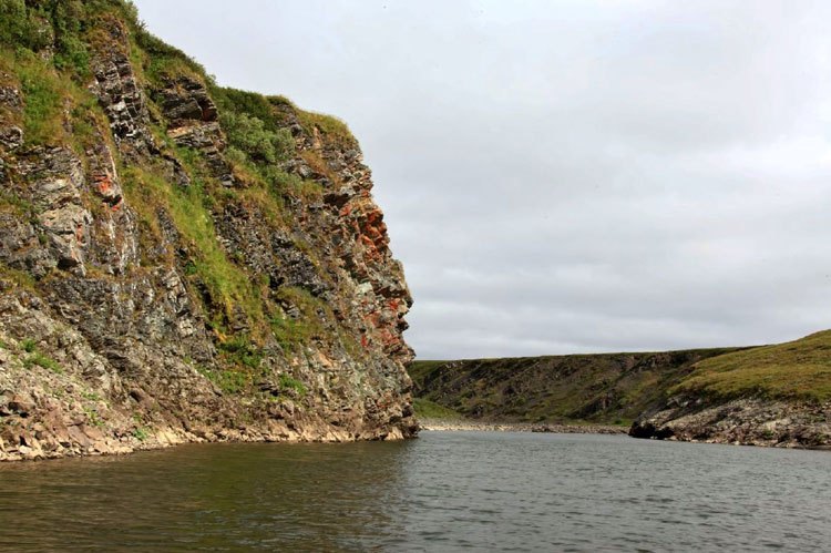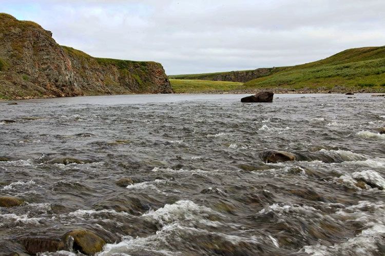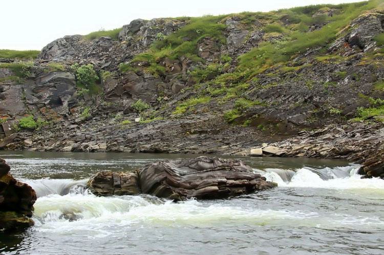 По мере приближения к хребту Пай Хой менялся и ландшафт.... В реке стали попадаться пласты сланцев. Острые как бритвы пластины сланца то там, то здесь грозили пропороть лодку или порезать обувь....