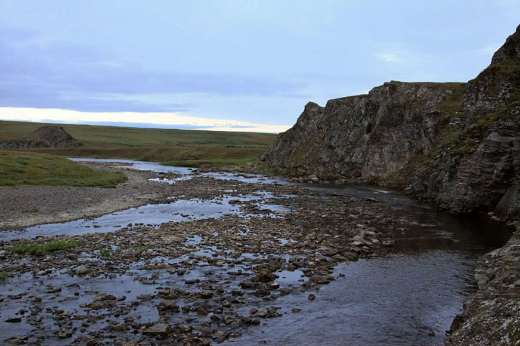 А сейчас следующий участок. Это участок реки от ручья Контактный до подошвы хребта Пай Хой (Каменная гора) - ручья Нюдя - Яха (маленькая река).