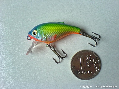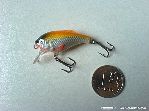Из приятного. Цена воблера на сайте АКВЫ – 98 рублей 40 копеек. Почти не в шутку можно как семечки покупать стаканами, привыкая (или приучая себя) к тому, что воблер - это приманка, не более. Хотя, что касается качества изготовления Толстяка – оно достаточное, что бы просто ловить рыбу, хотя, если нацеливаться на что-то крупное, то может быть и стоит поставить более мощные кольца на тройники. Хотя, это, как и перекраска в другой цвет и изменение плавучести – всегда в ведении рыбака ищущего в любой приманке скрытые возможности.