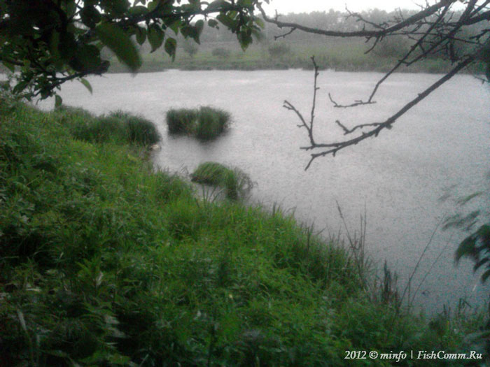 Азарт захватил мою рыбацкую сущность и поначалу я перебрался под развесистую клюкву яблоню этот самый дождь переждать, но потом вылез и продолжил швырять приманку, жаль, что бестолку. По дождику и домой вернулся.