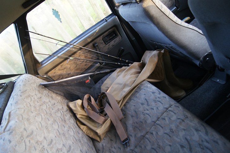 На всякий случай еще с вечера на заднем сидении я разложил спиннинг, подсак, забродные сапоги и коробочку снастей, мало ли пригодятся.