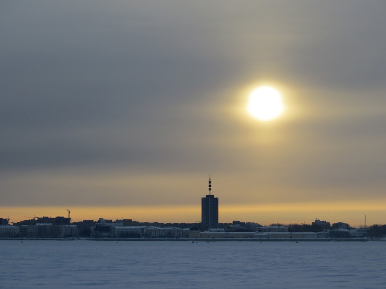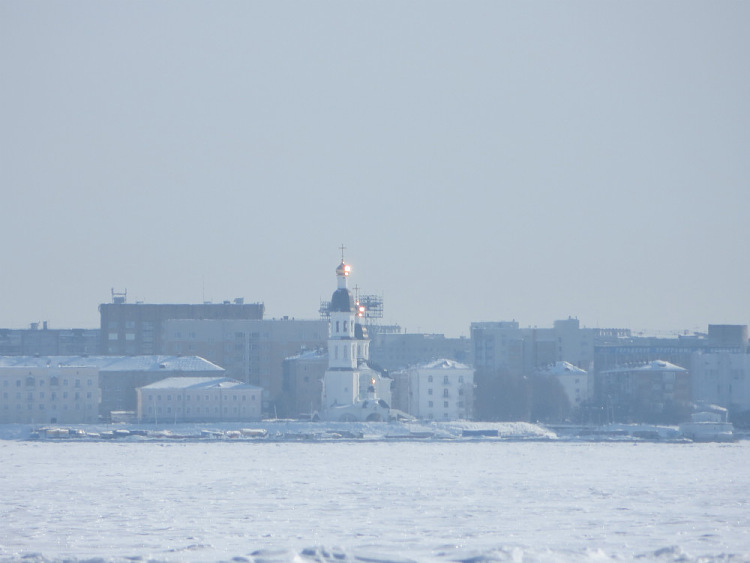 Восходящее солнце осталось за плечами, оно зацепилось за Архангельский небоскреб и никак не могло выбраться со мной в путь, в новый красивый загадочный путь, в мороз и беловатую дымку равнины Северной Двины.