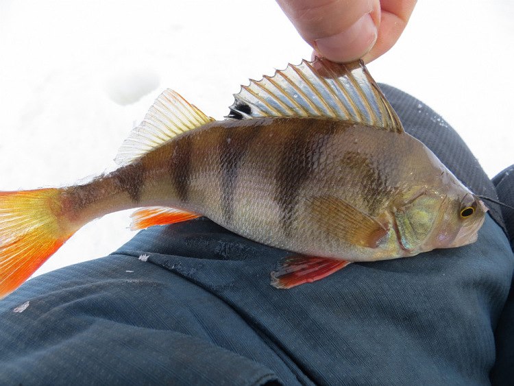Ничего себе. Окунек попадается под подбородок. Получается, атакует сверху. Я ж ловлю ниже уровня его комфортного расположения.