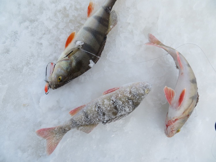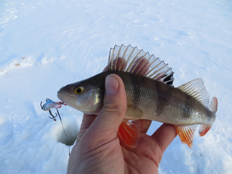 На лунке перестает клевать. Бурю вперед вдоль трещинки метра на два. Попадается пару небольших окушков.