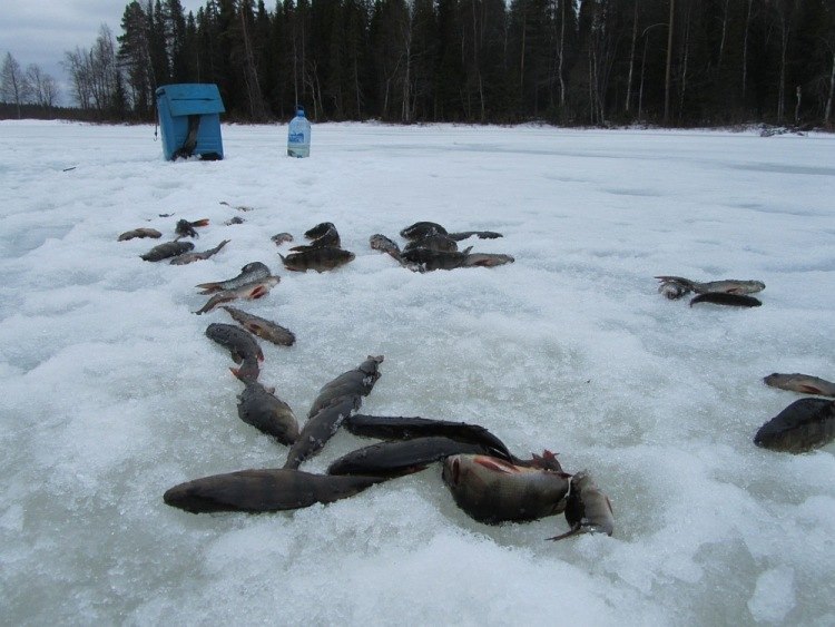 Обычно у лунки остаются не особо активные окуни, к ним подходят другие, образуя вновь стаю. По этому в последующем при возвращении на старую лунку поклёвка почти гарантирована.