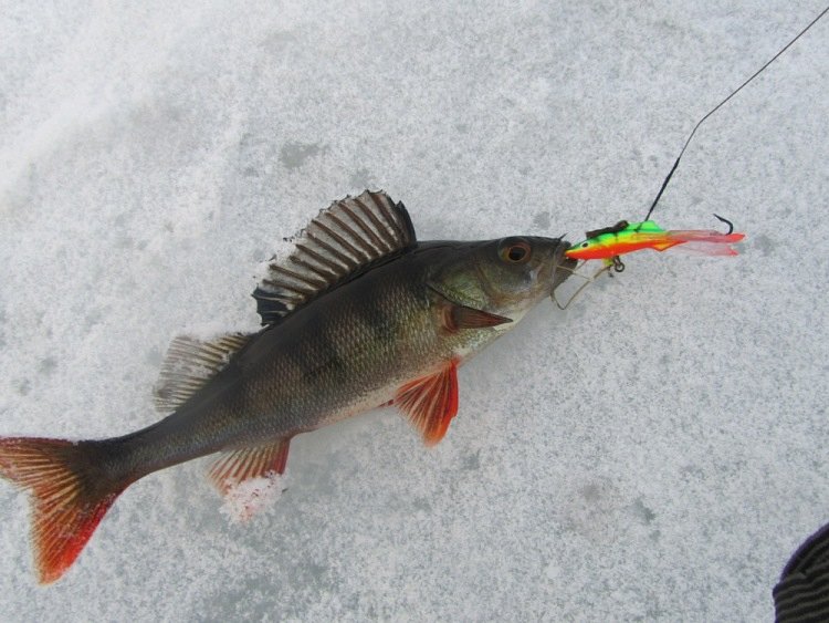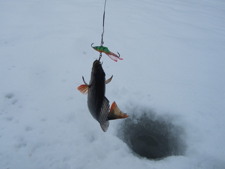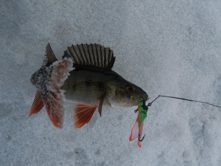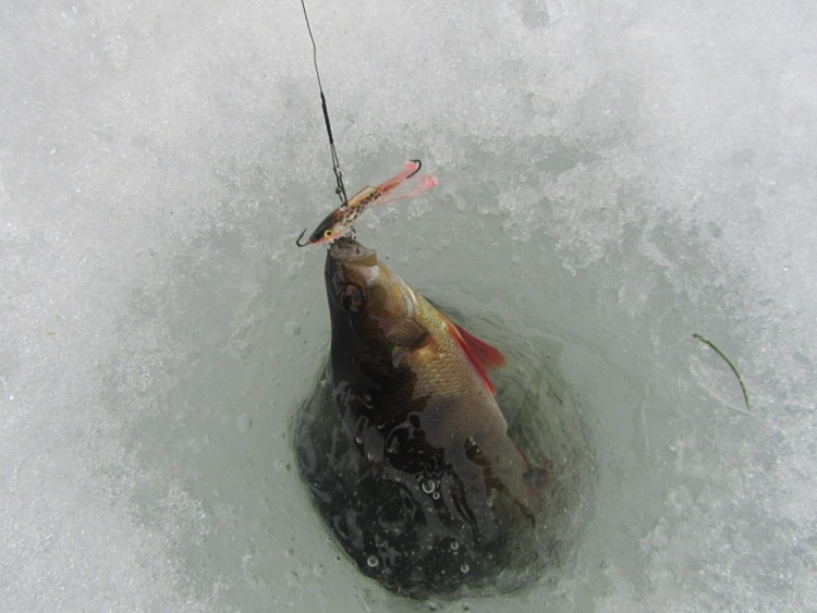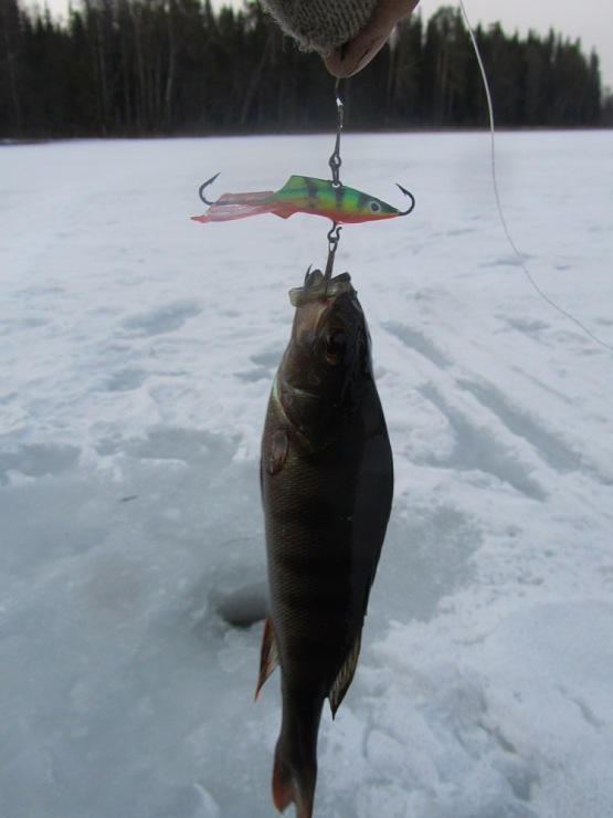 Весна окунь в стаи собирается. Разловил лунку. Уходить не надо. Как мне опытный рыбак рассказывал: «Быстрее лови». Смысл такой: окушок клюнул, его скоренько выводишь, скидываешь с тройника иль крючка и сразу балансир заныриваешь на глубину поклёвки. Мол, стайка приплыла, надо её удерживать игрой в данном месте и удобном для неё горизонте воды.