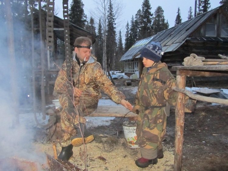 Семка возил опилки к избушке в волокуше, я ему, будто экскаватором нагружал. Пока занимался досками, ребята успели немного у избы прибраться. За раз весь мусор, накопившийся за зиму, не одолеть, конечно. Особо хапчики надоедают. Ими усыпана оттаявшая земля, будто опилками. Не понятно, как столько можно курить и разбрасывать свои оплевыши по кругу. Привычка, однако. Представляю, что за трава вокруг избушки вырастет, когда оставшаяся кака из окурков в почву попадет.