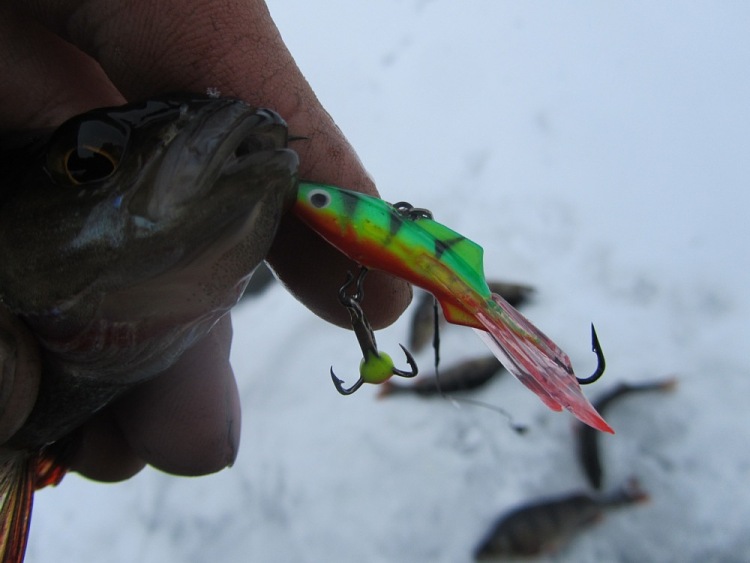 По моей практике получилось так, что лучше после поимки окуня, балансир остановить выше с четверть над местом предыдущей атаки. Затем, чуть подкинув, замереть. И уж с этой точки начать снижаться, дразня окуня.