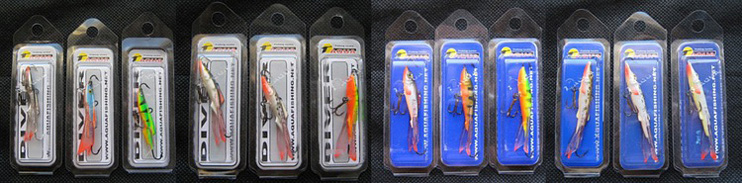 В распоряжении у меня оказалось несколько моделей, различных окрасок. Начать я решил с небольших (длиной 4-5 см) , близких по форме к классическим. Каждый балансир имеет индивидуальную упаковку, на обратной стороне которой указаны название, цвет и размер. В принципе, не помешала бы информация ещё и о весе.